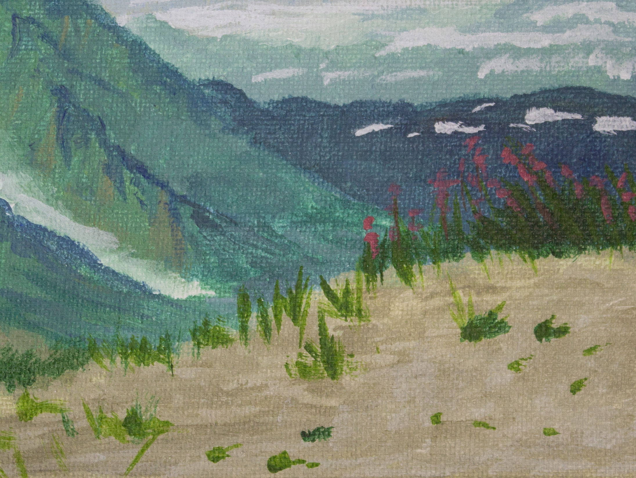Landscape painting and the view getting off the cable car at the midway point of Aguille du Midi in September. Part of the Tour du Mont Blanc, this view starts the hike to see the glacier Mer de Glace, and to see the 145 year old Refuge de Montenvers.